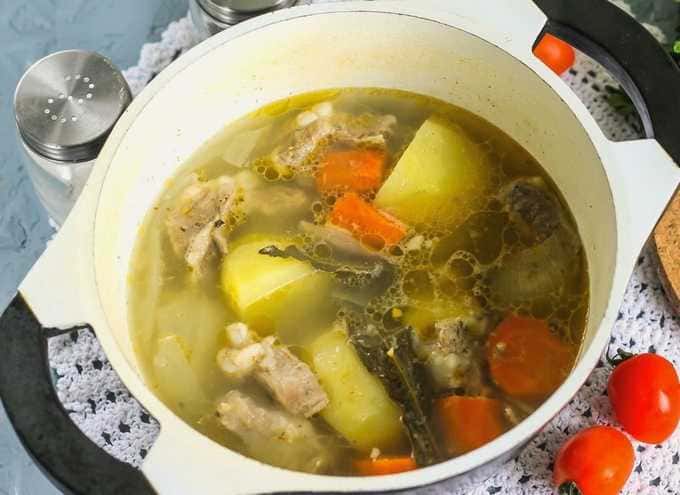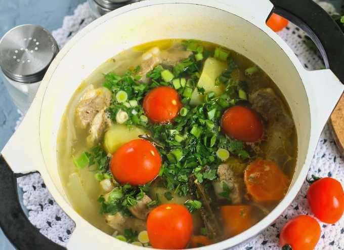 Stapsgewijs recept voor het maken van shurpa van varkensvlees zonder te frituren