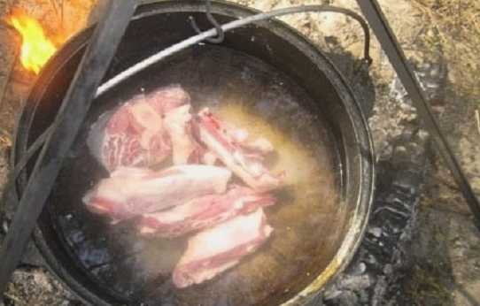 - Varkensshurpa in een ketel op een vuur - een klassiek recept
