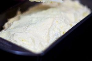 - Doe de kwark in een apart bakje en rijd de kippeneieren erin. Ze moeten op kamertemperatuur zijn. Voeg suiker toe. Klop alles met een blender.