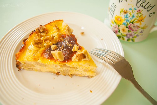 De combinatie van kwark met appels is een van de beste voor stoofschotels. Appels zijn beter voor zoetzure variëteiten. Het dessert blijkt licht en caloriearm te zijn, dus het is zelfs geschikt voor liefhebbers van afvallen van snoep. Zo'n braadpan wordt bereid volgens het principe van een klassieke braadpan, er wordt alleen een fruitlaagje aan toegevoegd.