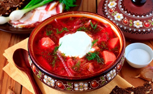 Oekraïense borsjt is beroemd over de hele wereld, incl. dankzij de klassiekers van de literatuur die hem in hun werken verheerlijkten. Dit is een rijke vleessoep met een rijke rode kleur. In de regel wordt naast vlees ook reuzel toegevoegd aan Oekraïense borsjt voor voedingswaarde, waardoor het gerecht zeer calorierijk, maar ongelooflijk lekker is.