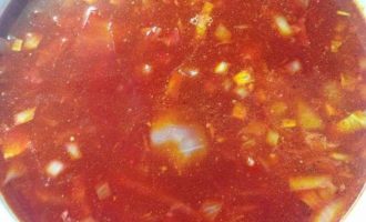 En soms kook ik borsjt helemaal zonder vlees, vooral tijdens het vasten. Ik vervang het vlees door rode bonen en doe nooit veel bieten in de borsjt. Ik krijg rode borsjt niet van bieten, maar van tomatenpuree of tomaten.