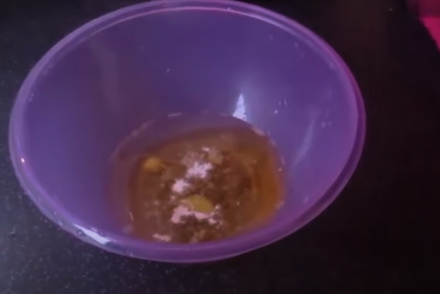 - Pers het sap van de citroen in een apart bakje, giet de olijfolie erbij, voeg een lepel honing toe. Giet de gedroogde oregano erbij en meng alles.