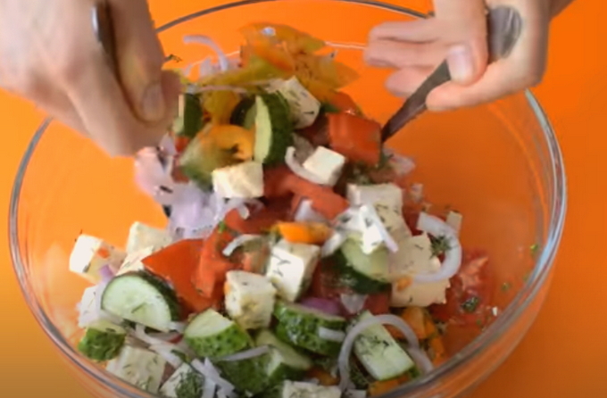 Stap-voor-stap recept voor Griekse salade met sirtaki kaas