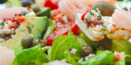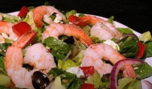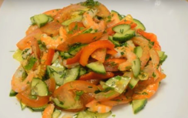 Het wordt aanbevolen om in dit recept gamba's te gebruiken - ze voegen niet alleen verzadiging toe aan de salade, maar versieren deze ook.