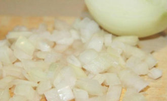 De klassieke ratatouille vereist een vulling, dus doe het eerst. Snijd de gepelde ui in blokjes.
