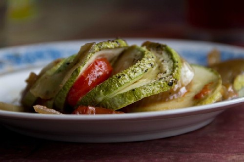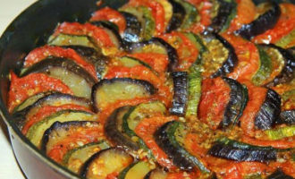 Het advies: als je geen zin hebt om ratatouille uit identieke groentecirkels te maken, bereid het dan zoals dit gerecht enkele eeuwen geleden in de Provence werd bereid. Doe alle in blokjes gesneden groenten in een diepe braadpan of steelpan, giet ze met saus gemengd met kruiden en laat het gerecht op laag vuur sudderen tot het gaar is of bak in de oven.