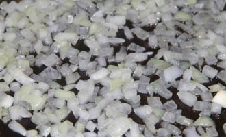 Verhit plantaardige olie in een koekenpan, bak de ui daarin gedurende één tot twee minuten.