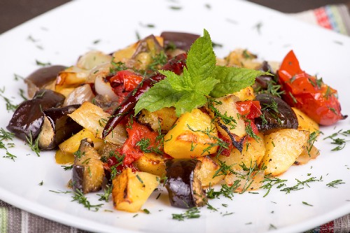 Ratatouille met aardappelen uit de oven
