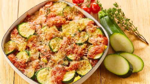 Ratatouille met kaas is een andere smaak van dit smakelijke en lichte groentegerecht uit Zuid-Frankrijk, en de sappige kaaskorst geeft het extra aroma en smaak. Als calorie-inname belangrijk voor je is, kies dan een vetarme harde of zachte kaas.
