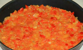 - Doe ze in de verwarmde plantaardige olie in een koekenpan en bak ze, af en toe roerend, tot ze het sap eruit laten komen en een beetje blussen. Tomaten kunnen van tevoren worden gevild.