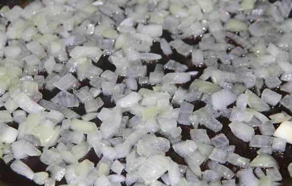 Verhit plantaardige olie in een koekenpan, bak de ui daarin gedurende één tot twee minuten.