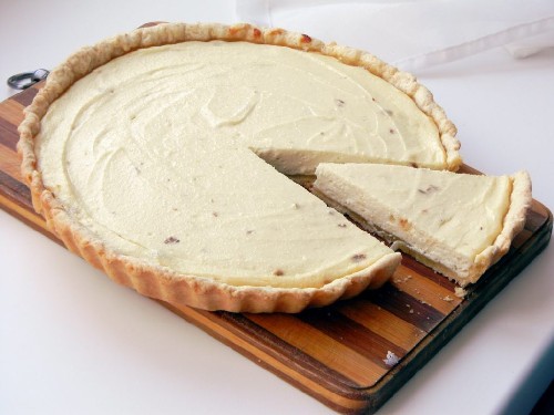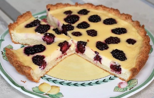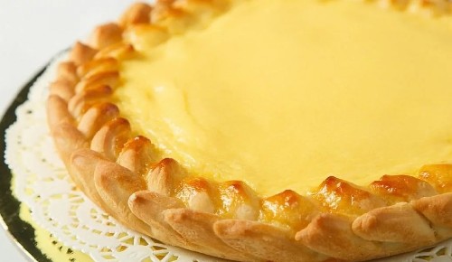 - We bakken de cake 40 minuten in de oven. De vulling moet een aangename gelige tint krijgen. Koel de afgewerkte taart en serveer.