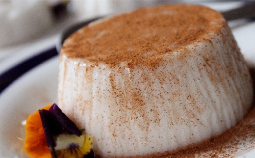 - Giet de room in een ovenschaal en versier deze met kersen erop, en vergeet niet de zaadjes eruit te halen.