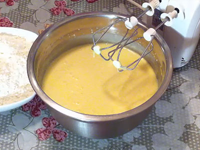- Meng voor de vulling alle benodigde ingrediënten in één kom. Klop het afgewerkte mengsel met een mixer.
