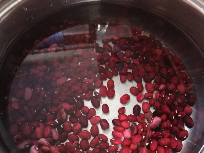 - Kook de voorgeweekte bonen apart.