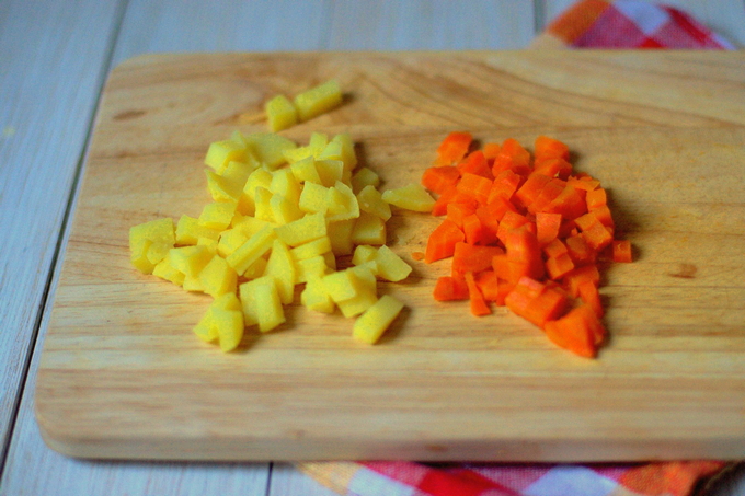 - Snijd alle groenten in zelfs kleine blokjes.