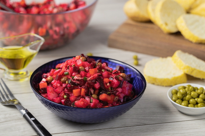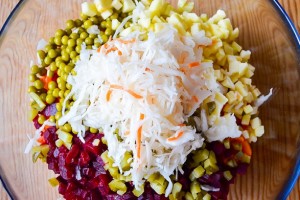 Stapsgewijs recept voor vinaigrette met doperwten en zuurkool