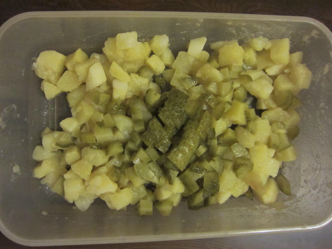 - Aardappelen en augurken - 2 stuks.