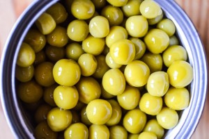 Voeg een pot groene erwten uit blik toe aan de vinaigrette, laat de marinade eruit lopen.