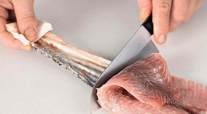 - Spoel de haring af met koud water, verwijder de kop en de ingewanden en verwijder het vel. Verdeel vervolgens in filets en verwijder alle kleine botten.