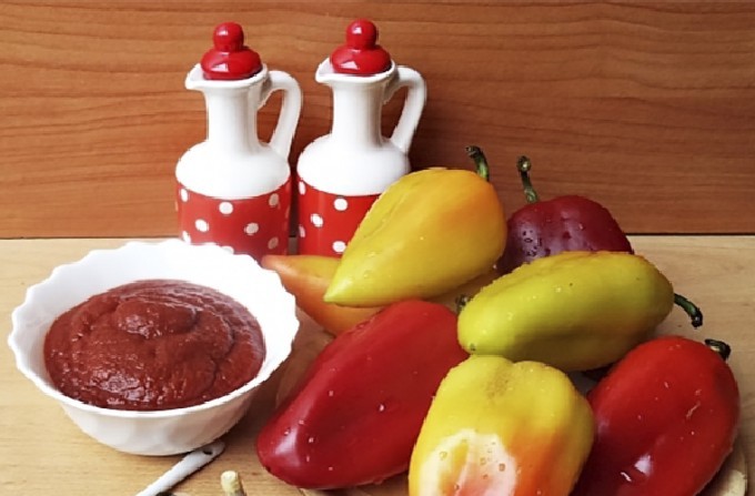 - Voor de bereiding van lecho is het beter om tomatenpuree te kiezen, die alleen tomaten, zout en suiker bevat. Te dikke tomatenpuree kan worden verdund met water.