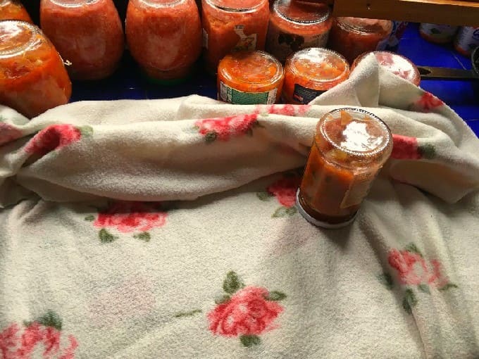 - Giet hete lecho in gesteriliseerde potten, rol ze op en laat ze afkoelen onder een warme deken. Na een paar dagen is de lecho klaar voor gebruik.