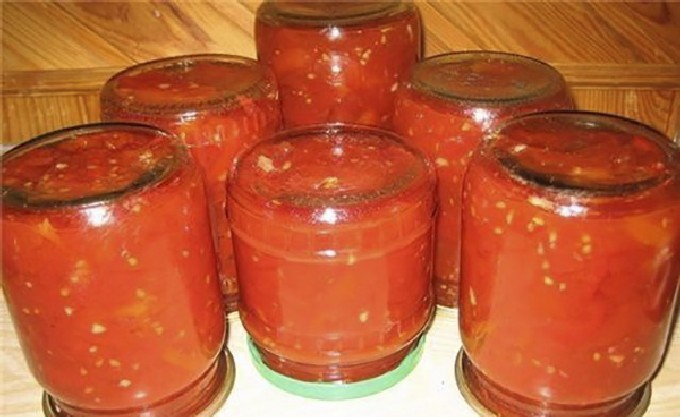 - We steriliseren de potten en doen er lecho in, rollen ze op met deksels. Draai de blikken om en laat ze afkoelen. Lecho met knoflook hoeft niet in de kelder.