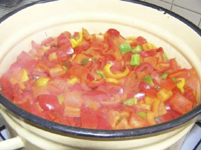 - Doe de paprika bij het tomatenmengsel en kook 15-20 minuten nadat de inhoud van de pan kookt.