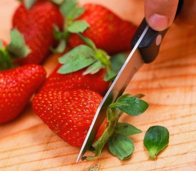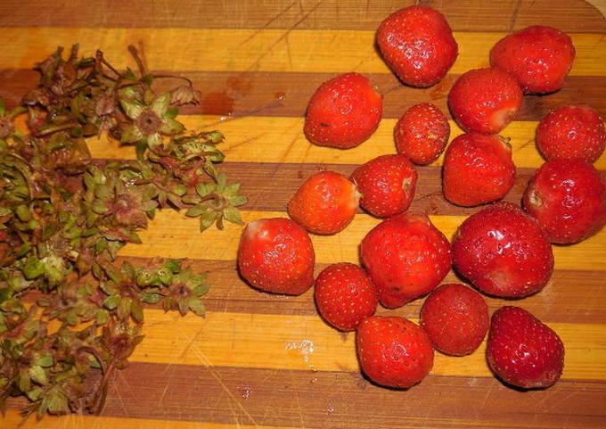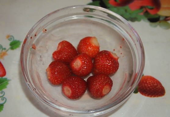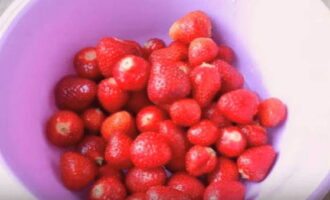 - Was de aardbeien en gooi de rotte bessen weg. Vermengd met rijpe bessen geven ze nog steeds een onaangename smaak. Schil de steeltjes van de aardbeien. Droog de bessen voorzichtig af met keukenpapier.