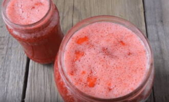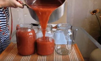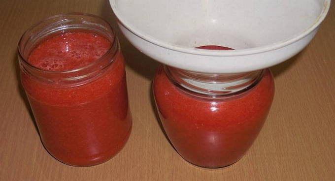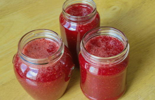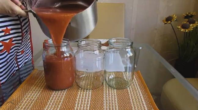 - Giet aardbeienpuree na het mengen in gesteriliseerde potten.