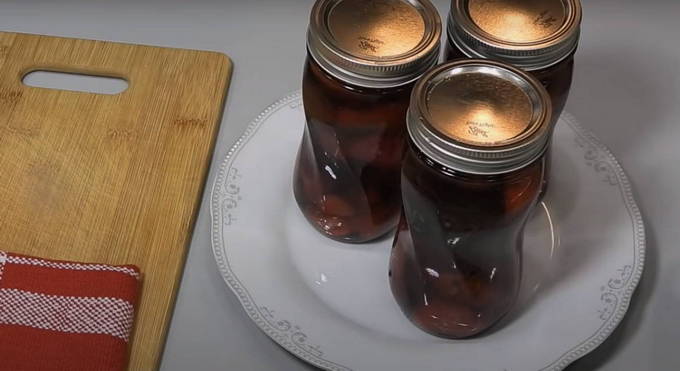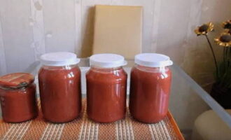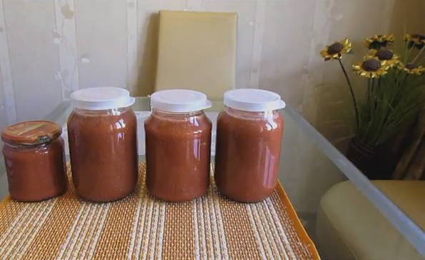 Sluit af met gekookte deksels en bewaar in de kelder of koelkast. Als u niet van plan bent om het voor een lange tijd op te slaan, laat het dan onder gewone nylon doppen. Eet smakelijk!