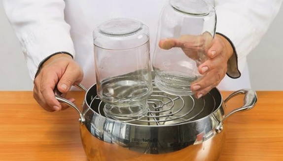 - Begin met het voorbereiden van de blikken om te draaien. Was potten met deksels grondig en steriliseer ze onder hete stoom.