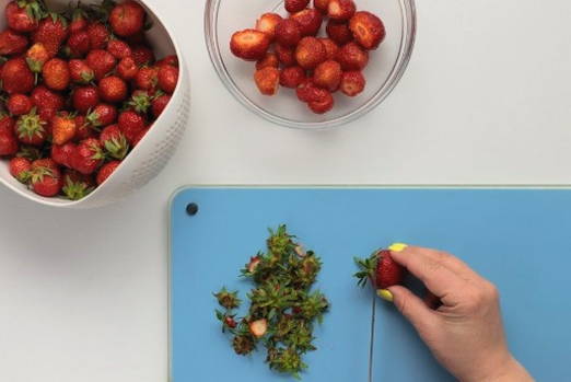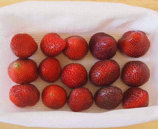 - Er is geen overtollig vocht nodig, dus laat de aardbeien drogen of versnel het proces met keukenpapier.