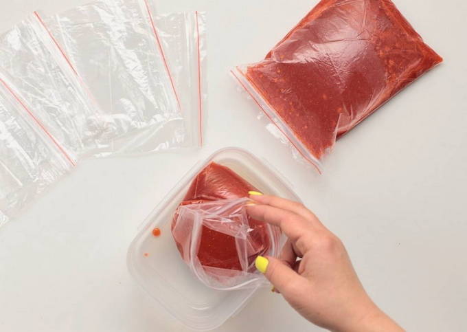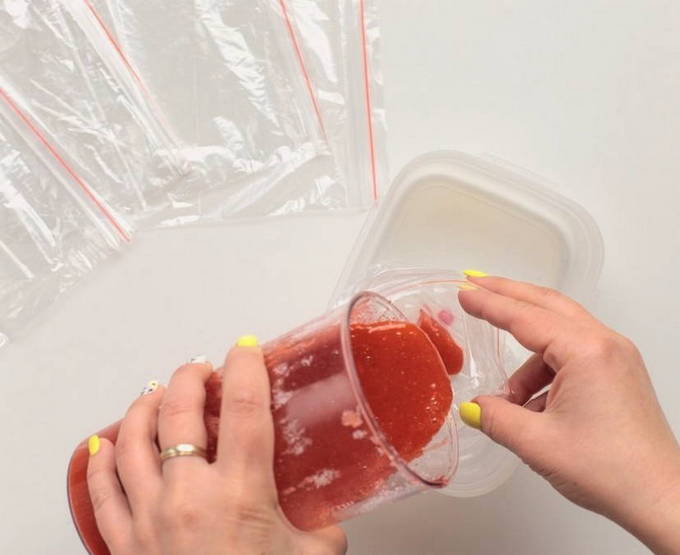 Als je de koelkast niet wilt vullen met een stel blikjes en er is geen aparte voorraadkast, dan kun je met dit recept zomerbessen bereiden zonder een al kleine vrije ruimte in de koelkast in beslag te nemen. Bovendien hoef je geen potten te kopen en ze te steriliseren. Je kunt jam direct in zakjes bewaren.