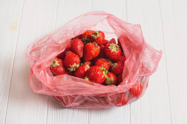 - Om geen vlekken op de tafel te krijgen, houden we de tas boven de container en vullen deze, zodat er vrije ruimte overblijft zodat deze kan worden vastgemaakt of rustig kan worden dichtgeknoopt (als je zakken met ritssluiting hebt).