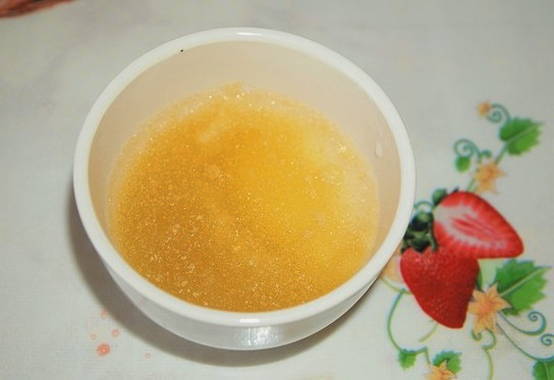- Gelatine koken. Gelatine heeft 1 eetlepel nodig voor elke 200 ml vloeistof. We kregen slechts 200 ml van de bessen. sap, dus we nemen 1 eetlepel.
