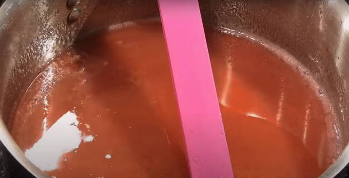 - We gooien de munt weg. Ze had haar geur al aan de siroop gegeven. Giet de vloeistof in een pan en voeg de pectine toe samen met de resterende suiker. Deze truc maakt de siroop dikker. We zetten de kookpan op het vuur en brengen de siroop aan de kook, onder voortdurend roeren met een garde. Na het koken 2 minuten koken.