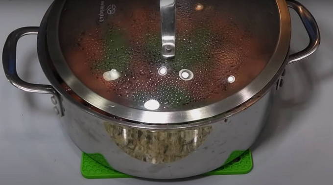 - Dek af met een deksel (hoeft niet goed te sluiten!) en laat volledig afkoelen. Het is beter om het een nacht te laten staan.