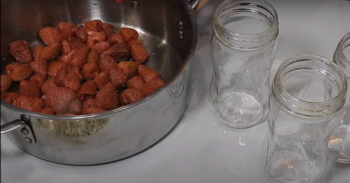 - Wij bereiden banken voor. Ze moeten worden gesteriliseerd, zodat de jam niet voor de winter verslechtert. Giet aardbeienjam in elke pot. Voordat je de jam schenkt, moet je hem opnieuw goed mengen of kloppen zodat er geen suiker op de bodem achterblijft.