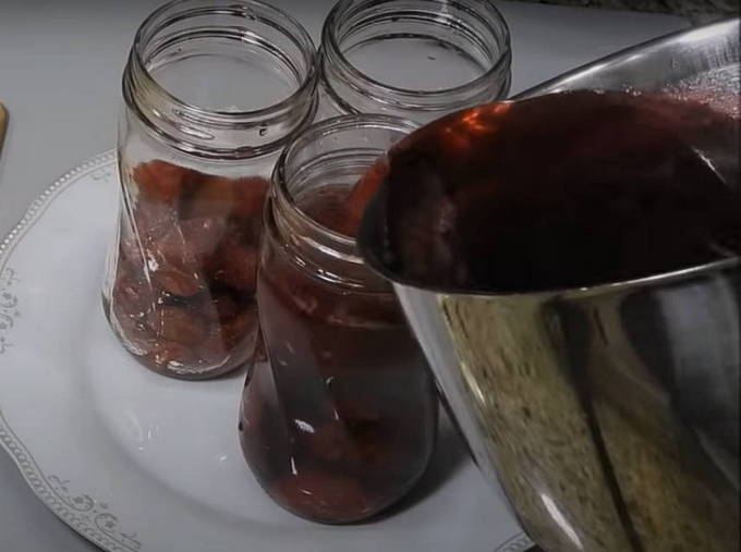 - We keren terug naar de hele bessen. We doen ze in gesteriliseerde potten.