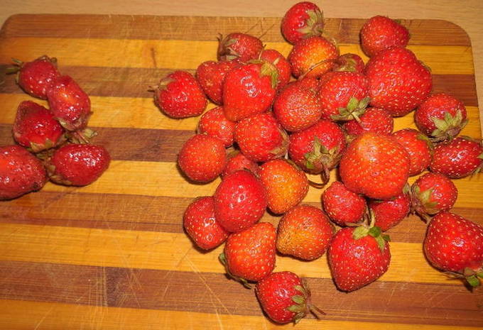 - We sorteren de aardbeien: leg de bessen op het werkvlak en selecteer de rotte exemplaren.