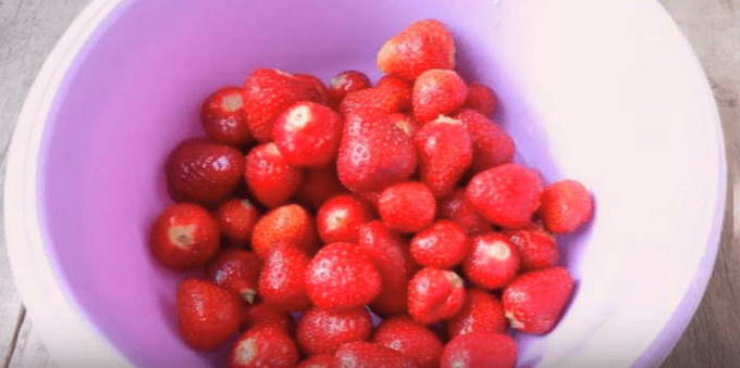 - Was de aardbeien en gooi de rotte bessen weg. Vermengd met rijpe bessen geven ze nog steeds een onaangename smaak. Schil de steeltjes van de aardbeien. Droog de bessen voorzichtig af met keukenpapier.