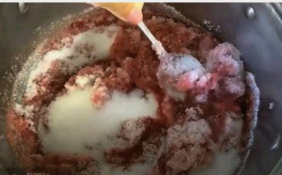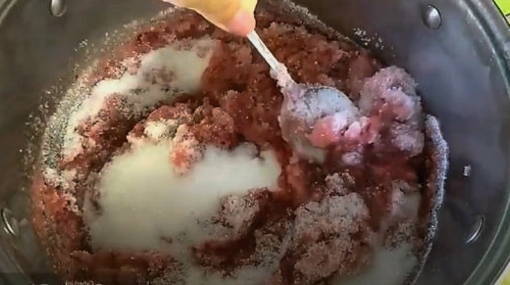 - Meng de bessenpuree goed met suiker zodat de suiker zoveel mogelijk oplost.