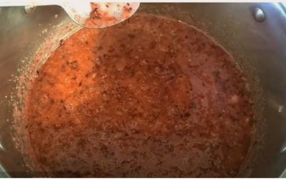 - Giet de suiker over de gehakte ingrediënten, meng goed en laat ongeveer een uur staan om de suiker op te lossen. Roer de jam in deze tijd meerdere keren om.