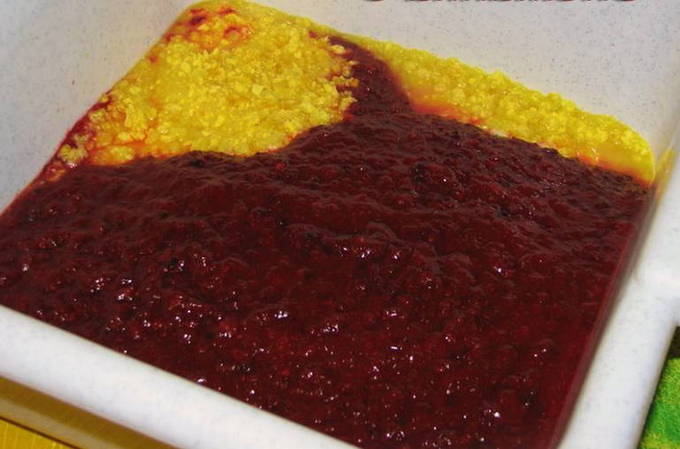 Veenbessen, gepureerd met suiker voor de winter om in te vriezen