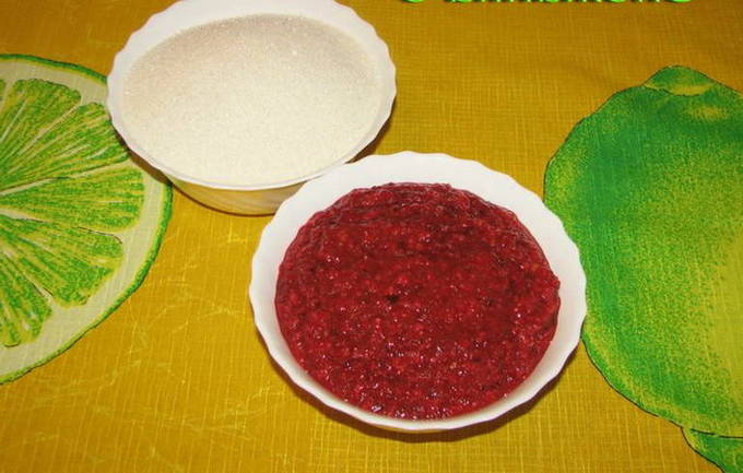 Veenbessen, gepureerd met suiker, zullen een goede winterbereiding zijn voor een gezonde fruitdrank, een drankje en een vulling voor zelfgemaakte taarten. Maal het met kleine hoeveelheden bessen met een blender. Om deze rauwe jam op een koude plaats te bewaren, wordt de verhouding van veenbessen tot suiker genomen 1: 1.