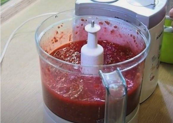 - Neem voor het hakken een blender of keukenmachine en giet de voorbereide bessen in de kom.