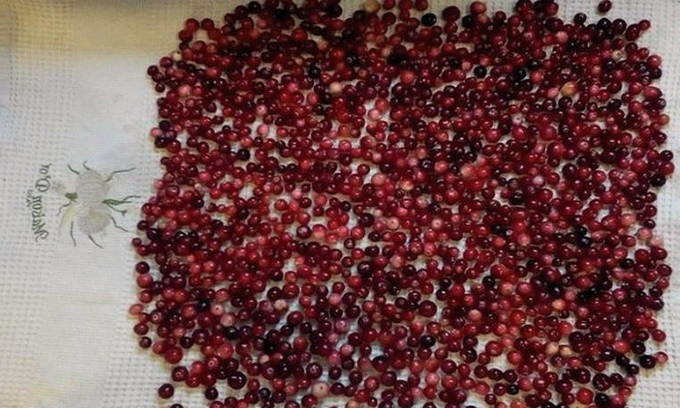 - Voor het invriezen moet de bes droog zijn - dit is de regel. Droog schone veenbessen door ze in één laag op een theedoek te strooien.