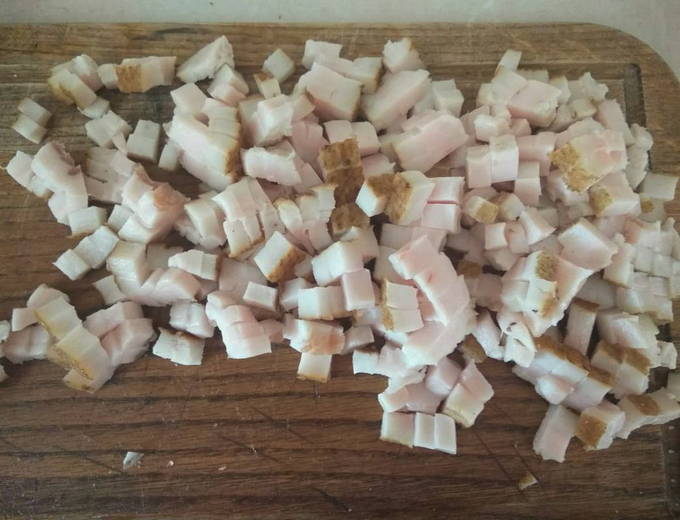 - Snijd het bevroren spek in kleine blokjes.